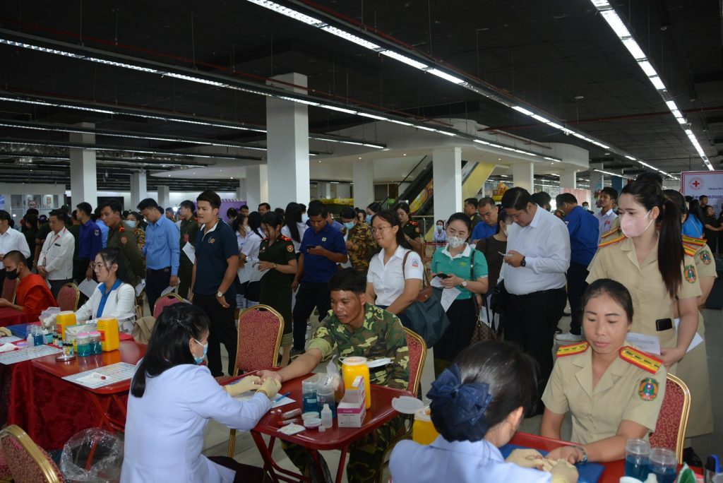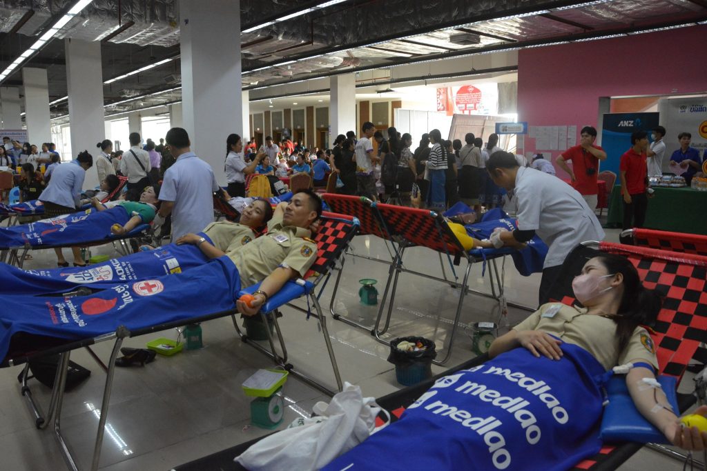 ໃນບັນຍາກາດກິດຈະກຳບໍລິຈາກເລືອດເພື່ອສະເຫຼີມສະຫຼອງວັນຜູ້ບໍລິຈາກເລືອດໂລກ ເຫັນໄດ້ວ່າຈຳນວນຜູ້ເຂົ້າຮ່ວມບໍລິຈາກເລືອດໃນຄັ້ງນີ້ ແມ່ນມີຫຼາຍພາກສ່ວນເຂົ້າຮ່ວມຢ່າງຄືກຄື້ນ.