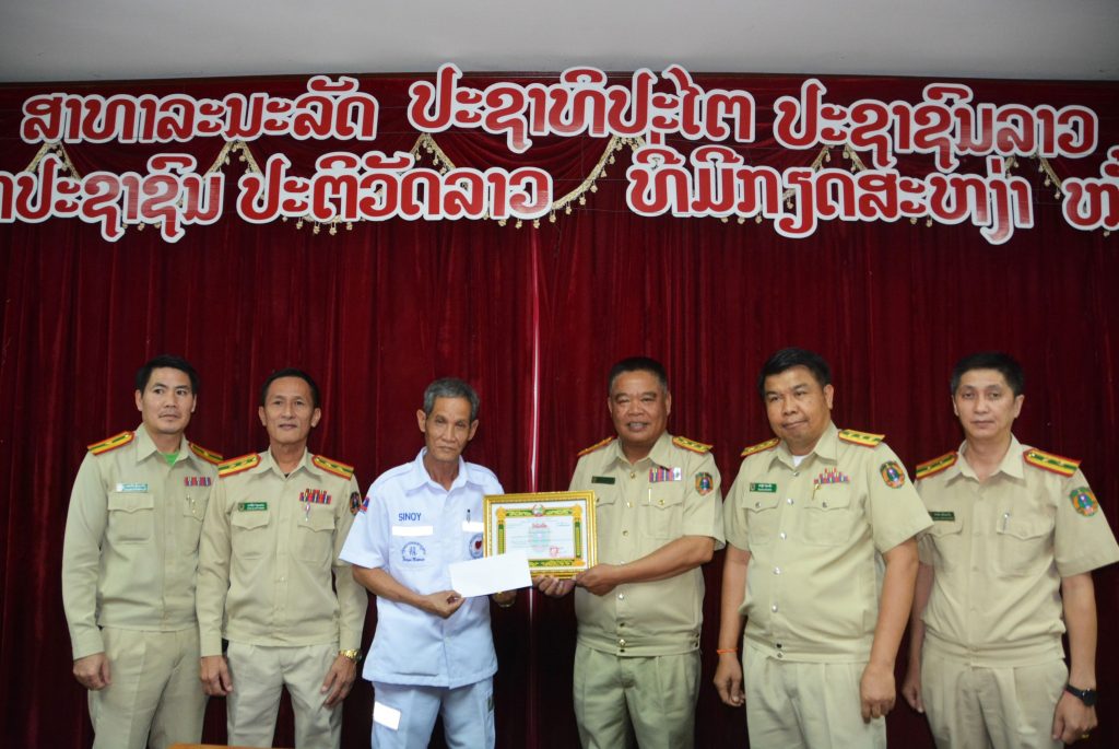 ເປັນກຽດມອບໃບຊົມເຊີຍໂດຍ ທ່ານ ພັອ ກົງສີ ສຸວັນນະຕຸ້ມ ຫົວໜ້າກົມຕຳຫຼວດຈະລາຈອນ ແລະ ທ່ານ ຍັງໄດ້ກ່າວ ຂໍຂອບຊົມເຊີຍ ມາຍັງທາງພົນລະເມືອງດີ ແລະ ໜ່ວຍກູ້ໄພ 1623 ທີ່ມີການຮ່ວມໄມ້ຮ່ວມມືຊ່ວຍເຫຼືອທາງເຈົ້າໜ້າທີ່ຕຳຫຼວດຈະລາຈອນ ແລະ ໃຫ້ສືບຕໍ່ຜັນຂະຫຍາຍເປັນແບບຢ່າງທີ່ດີໃຫ້ແກ່ສັງຄົມ.