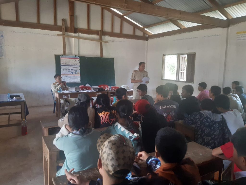 ຕົກມາຮອດ ຄັ້ງວັນທີ 10 ພະຈິກ 2023 ເຈົ້າໜ້າທີ່ຕຳຫຼວດຈະລາຈອນ ປກສ ເມືອງທຸລະຄົມ, ແຂວງວຽງຈັນ ສືບຕໍ່ລົງໂຄສະນາເຜີຍແຜ່ດຳລັດວ່າດ້ວຍກົດຈະລາຈອນທາງບົກ ແລະ ສະກັດກັ້ນຕ້ານອັກຄີໄພ ຢູ່ໂຮງຮຽນ ມໍປາຍວັງເຮືອ ພາຍໃຕ້ການເປັນປະທານຂອງທ່ານ ເສົາ ລໍ່ເບຍຢ່າວ ອຳນວຍການໂຮງຮຽນ ແລະ ພັທ ຕຽງທອງ ໄຊຍະວົງ ຮອງພະແນກຕຳຫຼວດ ພ້ອມວິຊາການໜ່ວຍງານຈະລາຈອນ 03 ສະຫາຍ ມີນັກຮຽນຊັ້ນມໍ 5-7 ເຂົ້າຮ່ວມທັງໝົດ 137 ຄົນຍິງ 43 ຄົນ.