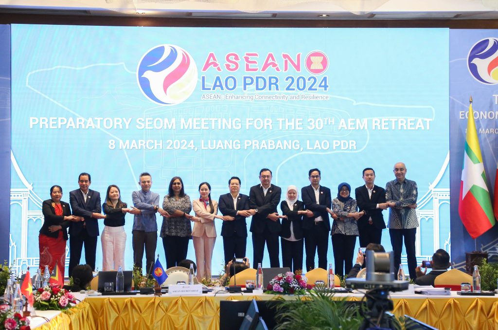 ໃນຄັ້ງວັນທີ 08 ມີນາ 2024, ໄດ້ເປີດກອງປະຊຸມເຈົ້າໜ້າທີ່ອາວຸໂສເສດຖະກິດອາຊຽນ ເພື່ອກະກຽມໃຫ້ແກ່ກອງປະຊຸມ ລັດຖະ ມົນຕີເສດຖະກິດອາຊຽນ ແບບວົງແຄບ ຄັ້ງທີ 30 (PREPARATORY SEOW MEETING FOR THE 30th AEM RETREAT) ມີຂຶ້ນໃນວັນທີ 8 ມີນາ 2024 ທີ່ໂຮງແຮມພູແມນ (Pullman) ຫຼວງພະບາງ